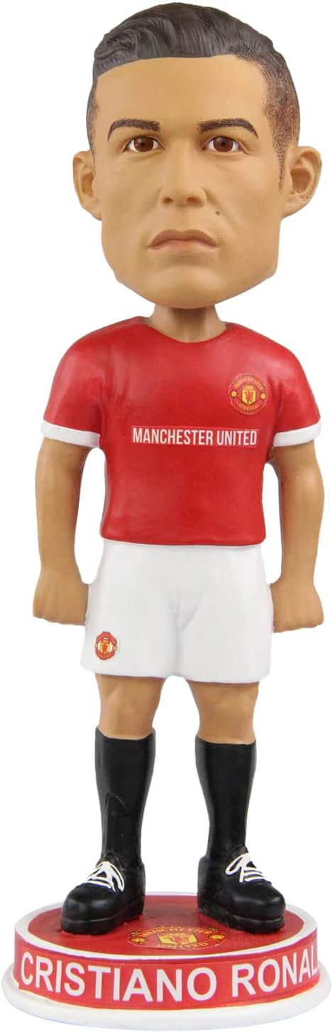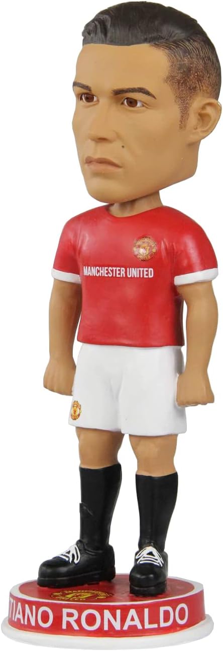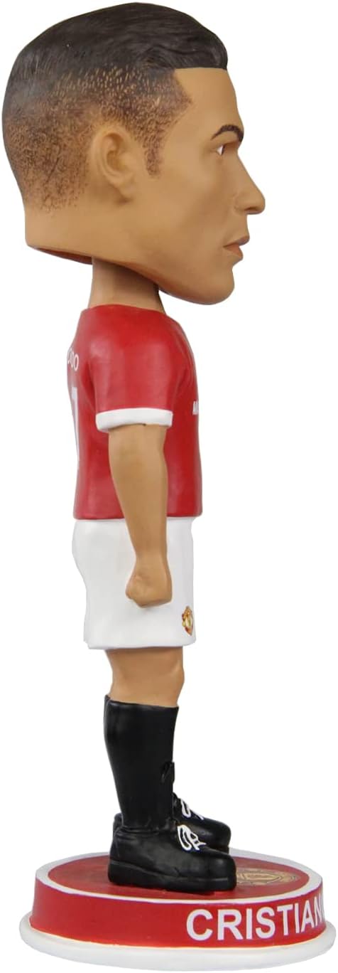 Official MUFC Cristiano Ronaldo Bobblehead Hand crafted & painted figure on team coloured base with club crest Height: Approximately 21cm. Supplied in club branded presentation box.